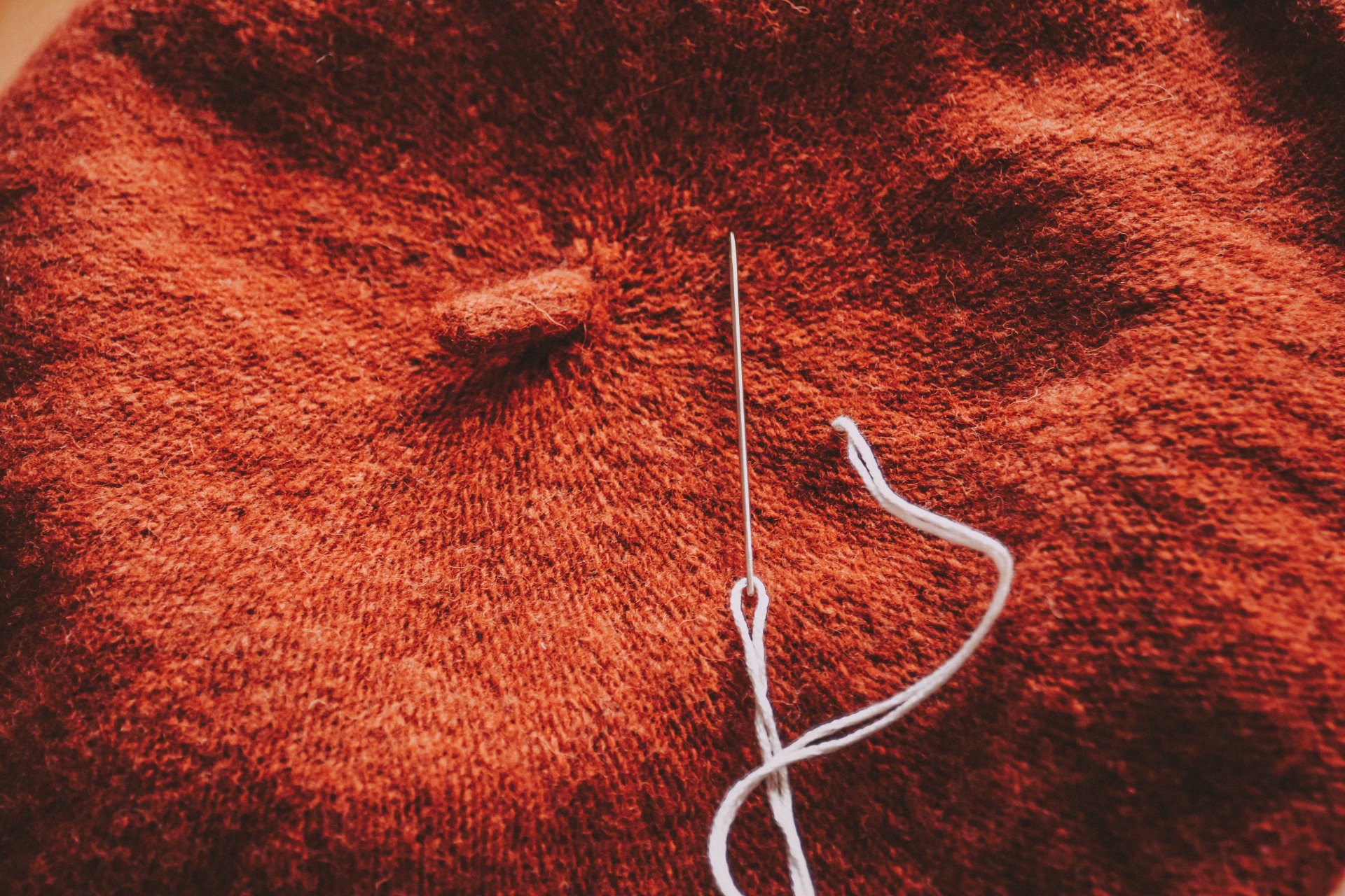 Teraz už len stačí navliecť niť a ide sa. Vpichneme zo spodu.