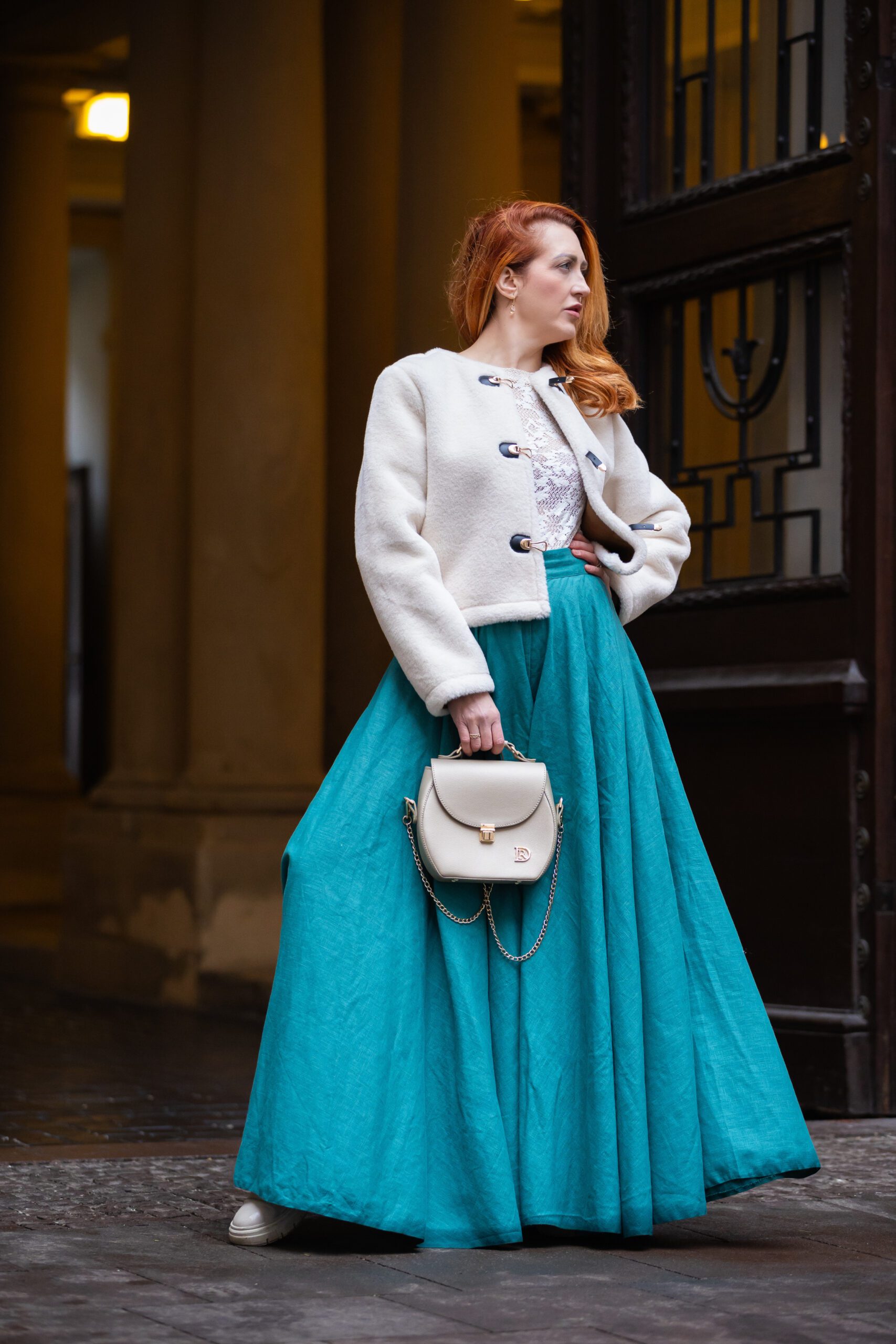 Sukňové nohavice so zipsovým rázporkom a zapínaním na gombíky. Sú kúskom v ktorom sa cítite ľahko a milujete ho nadovšetko. Strih je z mojej autorskej kolekcie Je mi jeseň, ostáva dlhodobo v ponuke. Sú ušité z látky s certifikátom OKO – TEX STANDARD 100 CLASS I. Gombíky vám napasujem podľa látky. Prípadne si môžete vybrať. […]