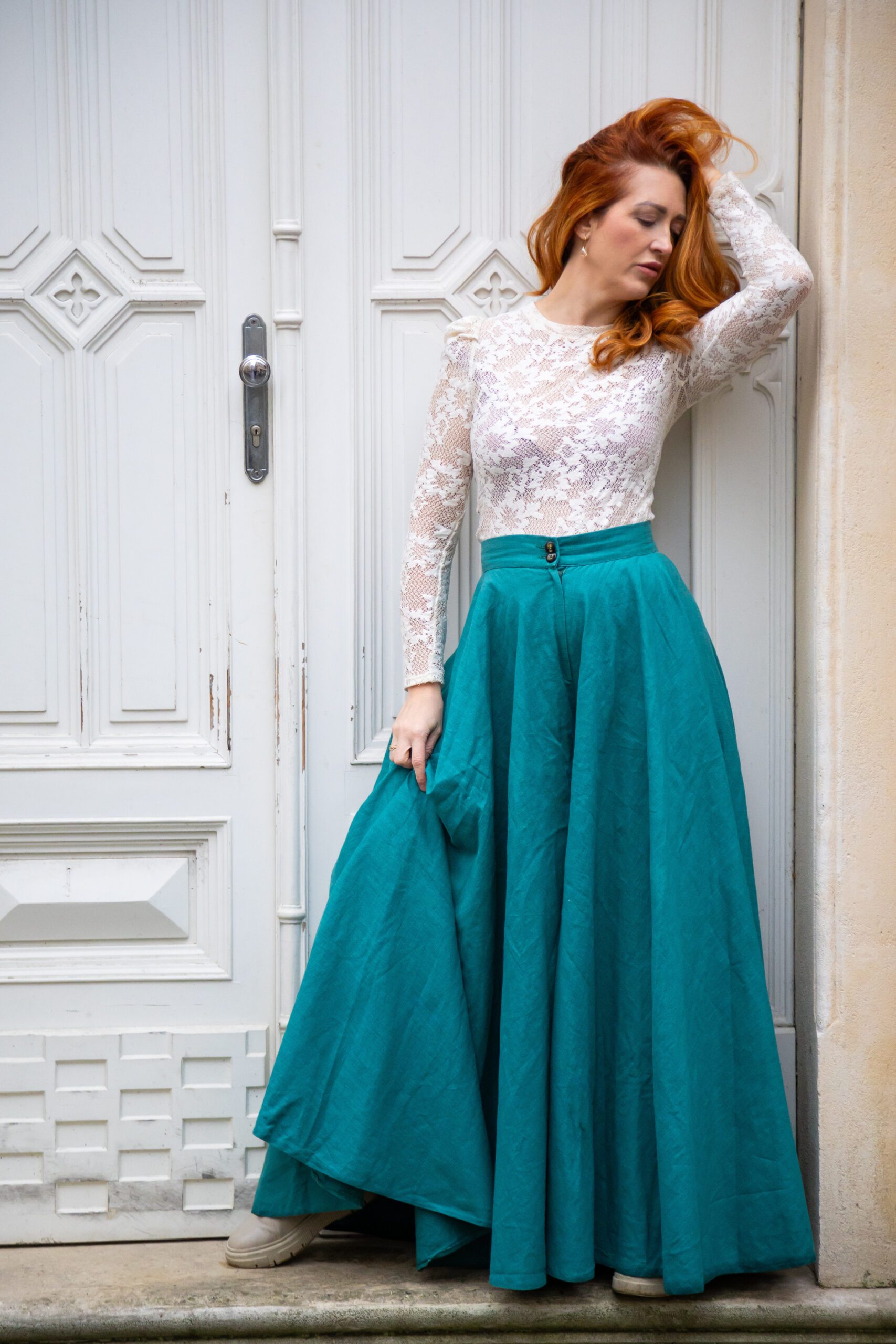 Sukňové nohavice so zipsovým rázporkom a zapínaním na gombíky. Sú kúskom v ktorom sa cítite ľahko a milujete ho nadovšetko. Strih je z mojej autorskej kolekcie Je mi jeseň, ostáva dlhodobo v ponuke.